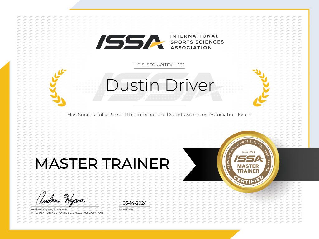 The ISSA Master Trainer credential is awarded only to distinguished ISSA Certified Trainers who have proven their competence in personal training and developed expertise in five additional areas of concentration through specialization certifications. This esteemed knowledge means personalized programs and targeted results for any type of client.