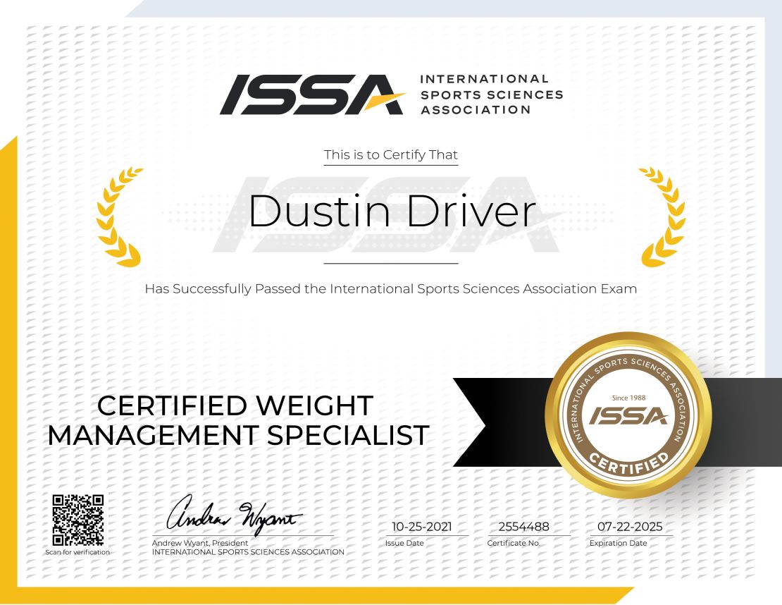 ISSA Weight Management Specialists have a passion for improving the quality of their clients’ lives far beyond what happens in the gym. Equipped with the knowledge of how the body gains and loses weight and how to estimate caloric expenditure versus caloric needs, Weight Management Specialists are able to help their clients reach their goals and establish healthier habits. ISSA Weight Management Specialists are prepared to educate and transform all types of clients.